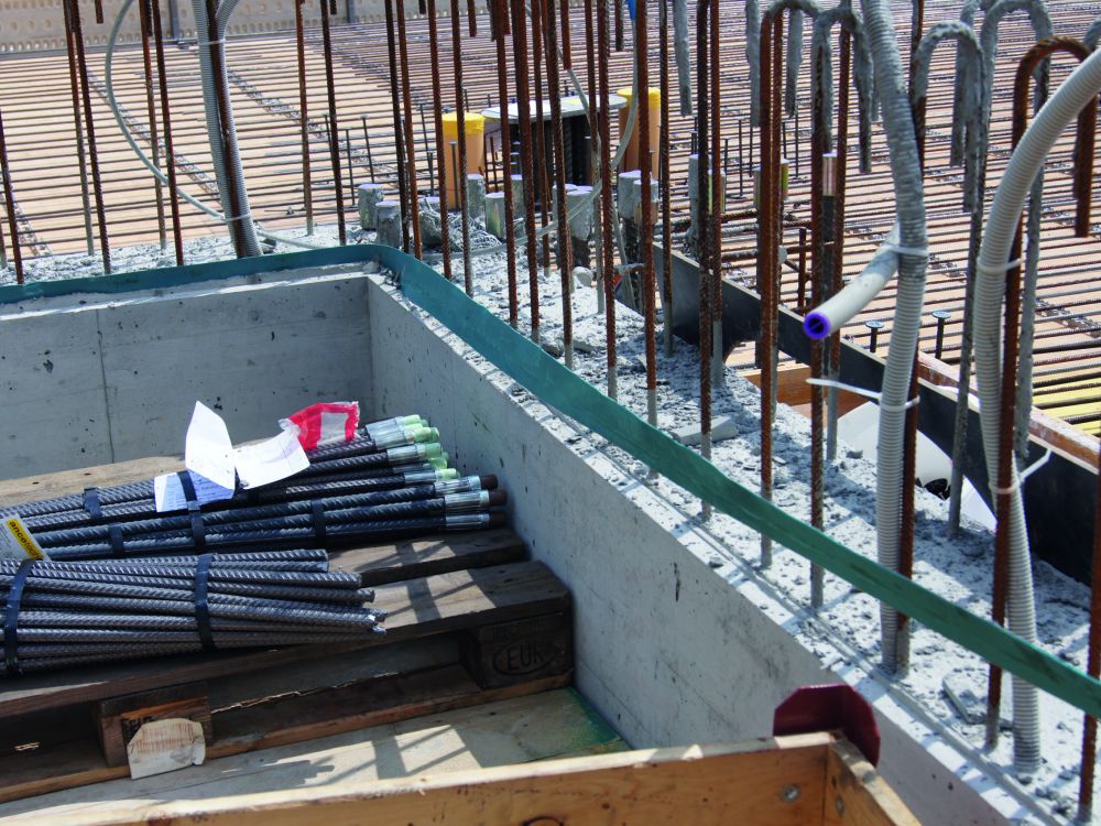 Bei jeder Betonetappe kann durch freiliegende Anschlusseisen Rostwasser entstehen. Läuft dieses über die Oberfläche, entstehen dauerhaft sichtbare Flecken.